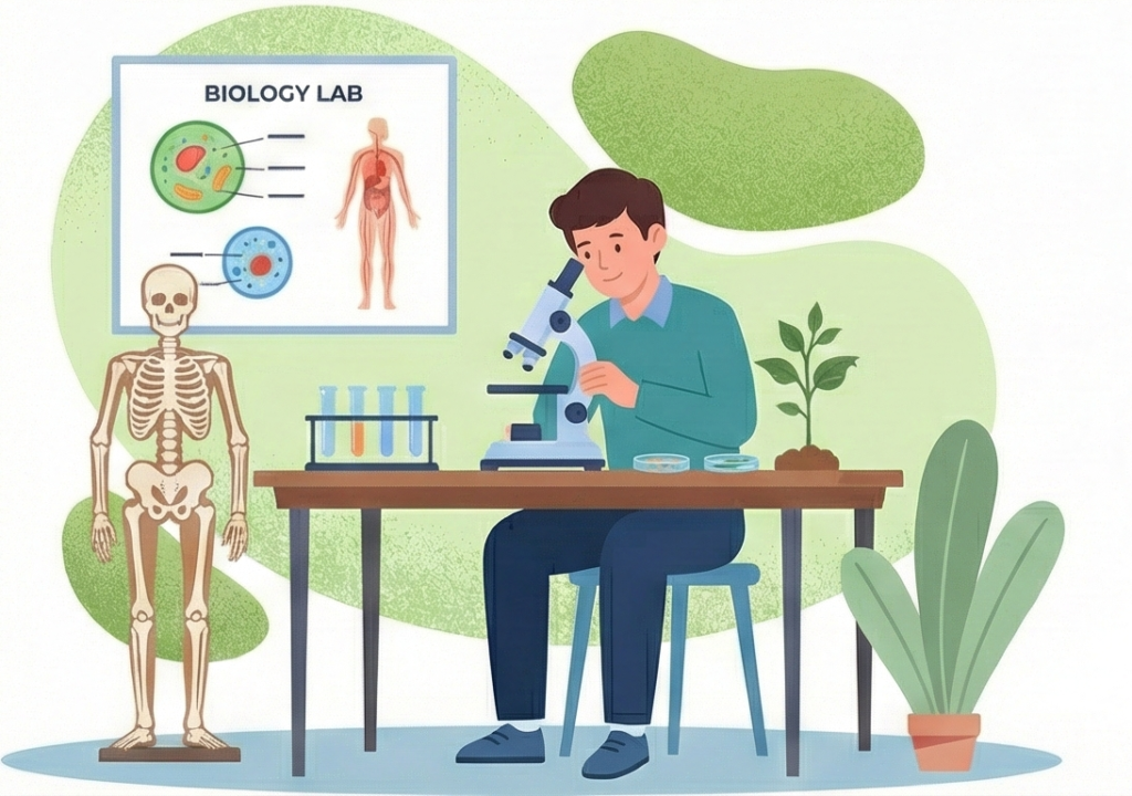 Our Biology Lab is equipped with microscopes, preserved specimens, charts, and models. Students explore plant and animal tissues, human anatomy, and environmental science through real observation. The lab fosters curiosity about living organisms and scientific research skills..